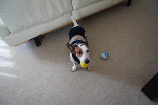 おそと(あるいは、おんも)で遊ぶのはかたいボールです。