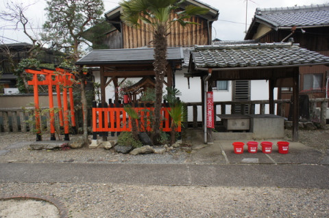 いや、その、無火災推進ののぼり旗と、バケツがね、鳥居やなんかと、同じ色なんだと思ってね。