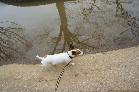 水に映った木は、まだモノクロームの枝ばかりですが、やがて、うすいピンクの満開の花が映る予定です。