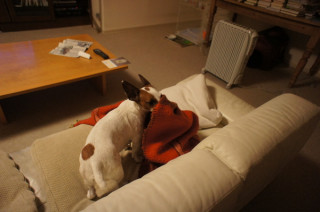 ブイヨン先生が、梱包芸術作品を制作しようとする瞬間です。