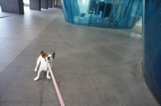 どんなにリードを引っぱられても、ふんばった足が床ですべるくらい、ぐぐっと力を入れます。