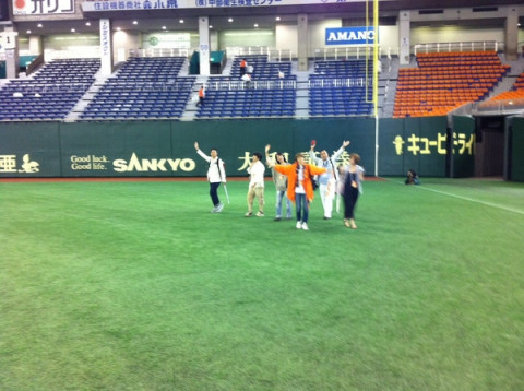 おとうさんは、東京ドームで、六月六日の下見をしています。