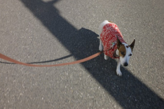 犬とおとうさんが散歩してるとき、おとうさんが、犬のことを前から写真撮るのは、とてもむつかしいことです。