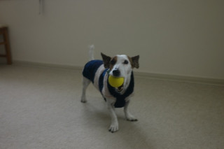 犬の服って、おなかのほうは、開いているんです。