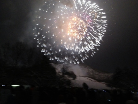 おとうさんたちは、雪のなかで花火をみました。