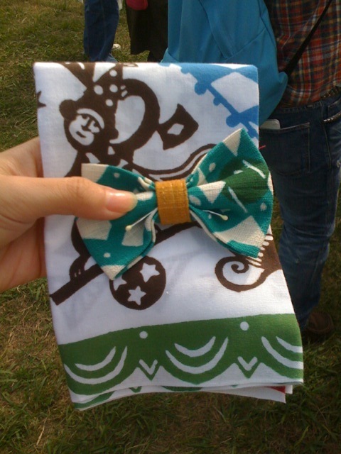 手ぬぐいとリボンのピンを買います。