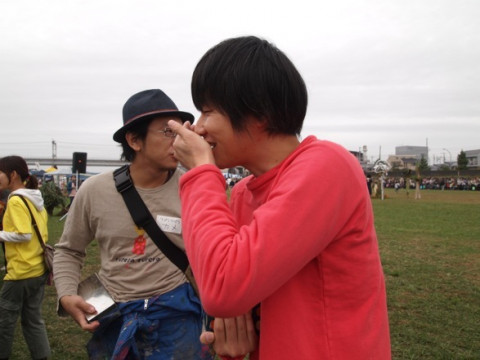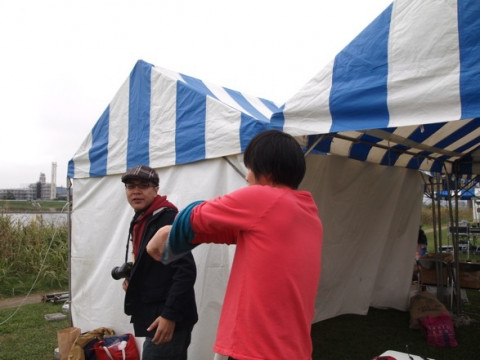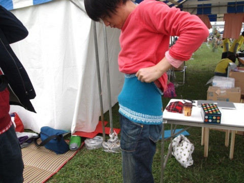 とぶるぶるしていたので、山下ウサギから、ハラマキを借りていました。