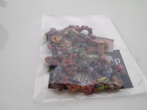 のお店のよこで、緒方さんの毛糸を使って作った手編みのかわいいアクセサリーが売ってました。
