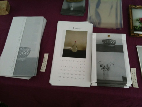 の、お花と骨董の写真のカレンダー。