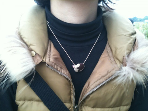 くるみボタンのついたネックレス。