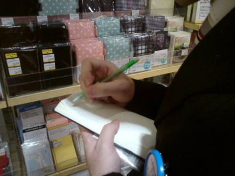 岩本さんに伺った話を自前のWEEKSにメモるオトヤ。
