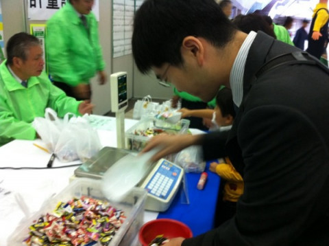 横浜組、キャンディ目方当て中の山根。