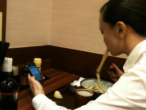 ビジネスレイディーは、かたときも携帯をはなしてはならぬ。