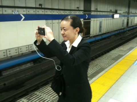 ホームタウンに帰るチーバ先輩は電車がはいってくる写真がとりたいらしくホームでスタンバイしてます。