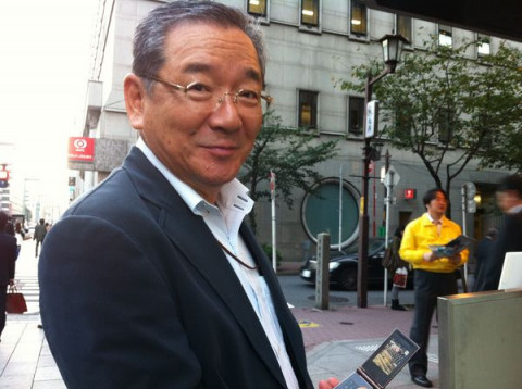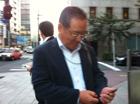 今日は朝から横浜をまわり、やっとここ日本橋で、定位置についたので画板をかまえようと用意していたところ、店の前でこの方につかまってしまいました。