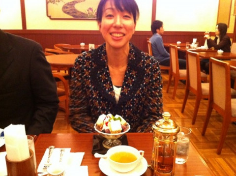 やっと、1喫茶にありつけた社長チームですが、ヤマカワ、タナカの過剰喫茶チームに負けじと冨田も、山盛りのサンデーと紅茶を。