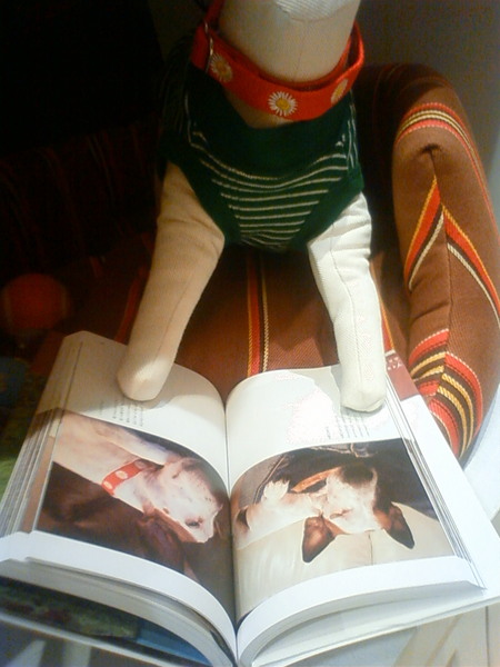「ブイヨンの気持ち。」を、犬のマネキンがひらいているようにディスプレイしてくれています。