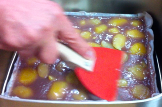 蒸し上がりました! しぞーか(静岡)の実家でもと和菓子職人の父から栗蒸し羊羹のつくりかたを実践で教わっている武井です。 火にかけて25分ごとにお湯を足し、向きをかえ、2段ある天地をかえつつ、ようやく蒸し上がりました。 「仕上げが肝心だでな」 仕上げというのは、表面に浮いた水分をゴムべらでていねいにぬぐい去ること。 水分といっても、あんを含んでねっとりとしたジャム状のもの。 このままにしておくとべとべとになっちゃうんだそうです。 このぬぐったジャム状のものは捨てずにジャム的に使ってもいいらしい。 これもそれなりの熟練が要るそうです。 さてさて、これでいちおう完成ですけど、食べられるのは明日以降です。 このあとさらしをかけて、常温でさまします。 そうすることで味が落ち着くんだそう。 あたかかいままだと切れない (包丁にべっとりつく)しあついうちに食べてもおいしくないんだって。 それにしても和菓子づくりって手間のかかるものですね。 ちゃんとやるには3日かけて栗を煮て前日までにあんこを練り蒸してから一晩くらいおくわけだから5日はかかるってことだ。 父が和菓子屋をたたんだのが昭和50年。 ぼくがしぞーかを出て26年たって、今、やっと教わろうという気持ちになりました。 サンキューとうさん! おいしくできてるといいなあ。 さて東京にもどろう。 |