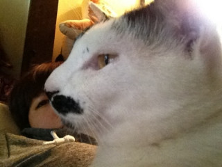 友人は猫アレルギーなので、指先のみで、精一杯のかわいがり方をしています。