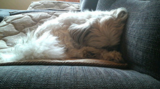 犬の寝顔を見て過ごします。