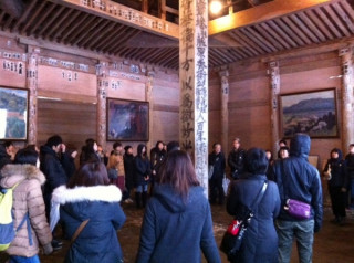 カレイコース、中尊寺の鞘堂を見学中。
