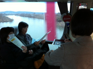 さっそくみなさんバスガイド小野寺さんのお話に聞き入っています。