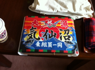 包み紙の絵柄は、気仙沼で大漁旗をつくっている菊田染物屋さんのデザインだそうです。