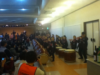 こちら、市民会館中ホールの打ち上げ会場では気仙沼の子供たちによる元気いっぱいの太鼓の演奏が始まりました!