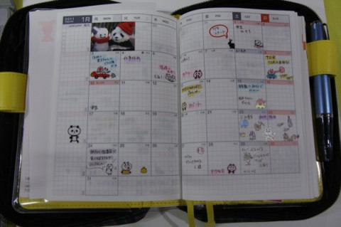 中も見事なパンダだらけ。月間カレンダーもこのとおり(くりはむ)