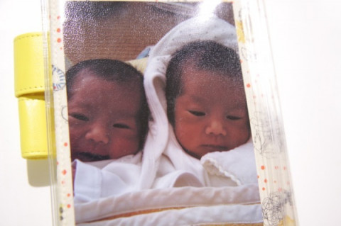 カバーオンカバーの中に双子ちゃんの写真が!
