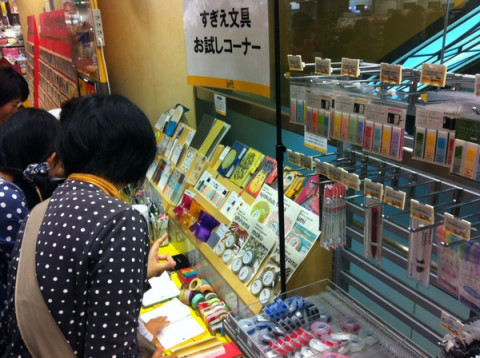 すぎえ文具のお試しコーナーもエスカレータ横です