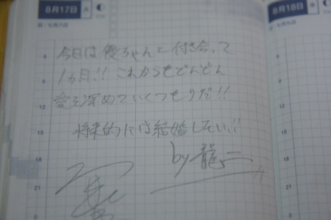 勝手に手帳にプロポーズを書いてくるんだそうです。