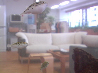 4通同時 ーーーーーーーーーー 初めて、初めて3匹一緒にお姿を拝見しました! 嬉しい!! しかも美しい半円フォーメーション!!! 今日はいい日です♪ (KM) ーーーーーーーーーー ミドリフグさん三匹見たの初めてです。 ラッキー(^-^)/いいことあるかな(いちはは)ーーーーーーーーーー びっくりしました!3匹いたんですね〜一家かな? 綺麗になった水槽をノビノビ自由に膨らんだりほうぼうに泳いでいる姿に癒されながらお休みを過ごしています☆ (あお) ーーーーーーーーーー スーパームーンを先頭に御三方、大吉でました〜!って感じです。 (うちの) ーーーーーーーーーー 同じ画像にたいして、四通同時にメールをいただきました! 三位一体で美しいフォーメーションを描いていますね。 大きい順で上から並んでるし。 これはラッキーといっていいのでは! それにしてもスーパームーン(一番上の丸い彼)はよく上にいますね。 さすがスーパームーン。 2012/05/30 10:12 |