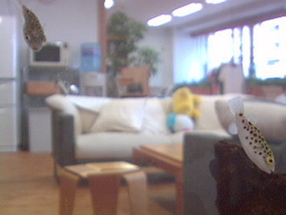 ほぼ日の事務所にあるミドリフグの水槽を写しています。 ミドリフグさんの姿をみるもよし。その先にみえる会議の風景をみるもよし。暇つぶしにいかがですか。