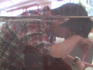 苦悩 ーーーーーーーーーー 苦悩してる…。 ーーーーーーーーーー してますね‥‥彼はアルバイトの 水槽の掃除中で、ピンクのスプーンをもって、交換用の水に塩を入れている所ですね。 おそらく、本当に塩を入れていいのだろうか、塩なんていれたらミドリフグさんの目がしみて、目が真っ赤になってしまうのではないか。 この塩は食塩とどう違うのだろうか。 そもそも、これは塩なのだろうか、砂糖だったらどうしよう。 等々、考えすぎでこのポーズになっていたのだと思います。 苦悩している彼はおいておいて、岩似シリーズで僕は岩が熊に見えるのですが、今回の画像、 「熊が水中の泡を一気に吸い込んでいる」 図に見えません? 2012/06/18 10:04 |