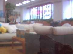 ソファーの一部をボールに見立てると膃肭臍にみえました。