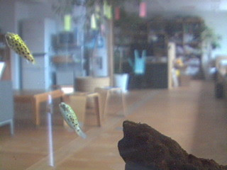 ほぼ日の事務所にあるミドリフグの水槽を写しています。 ミドリフグさんの姿をみるもよし。その先にみえる会議の風景をみるもよし。暇つぶしにいかがですか。