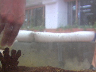 掃除 ーーーーーーーーーー はじめてお掃除のタイミングに遭遇! こういう透明筒でフグさん達は移動するのかしら…? それにしても、お掃除担当されてる方の、手の感じが素敵すぎます…(惚)かっこいい手のカタチ…ほんと素敵…。 こうやってお掃除してくださるので、私たちもフグカメラ楽しみに観に来れるのですね〜。 いつもありがとうございま〜す! (ぁぃょぅ) ーーーーーーーーーー お目が高い! この透明な筒なのですが、水換えの時に水を吸う筒でして、水槽の砂は吸わずにゴミだけを拾うという優れものです! 水槽より低い位置にバケツを置くと、重力の関係で自動的に水が下に流れていくので、筒を入れたらあとは待っているだけで、水がどんどん吸われていくのです! 知っている人にとっては普通なのかもしれませんが、初めて知った時は感動しました! っと、透明筒の説明に熱くなってしまいましたが、本命は手ですよね。手フェチですね。 はい、こちらはアルバイトのジュンペーの手です。 だいたい木曜日の昼頃に見えると思いますので、もう一度みたい場合には出待ちをしていただければと! 2012/11/05 10:50 |