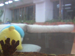 夜遅くになると、だいたいいつも泳ぎを放棄して、下の方にいますよー。