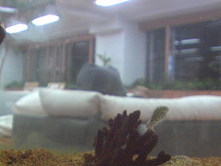 ほぼ日の事務所にあるミドリフグの水槽を写しています。 ミドリフグさんの姿をみるもよし。その先にみえる会議の風景をみるもよし。暇つぶしにいかがですか。