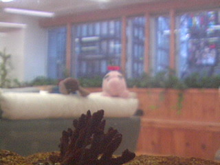 ほぼ日の事務所にあるミドリフグの水槽を写しています。 ミドリフグさんの姿をみるもよし。その先にみえる会議の風景をみるもよし。暇つぶしにいかがですか。