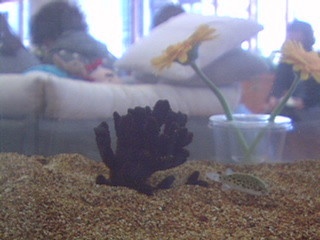 ほぼ日の事務所にあるミドリフグの水槽を写しています。 ミドリフグさんの姿をみるもよし。その先にみえる会議の風景をみるもよし。暇つぶしにいかがですか。