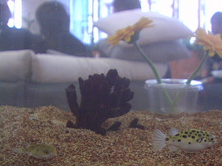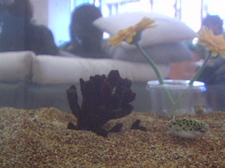 ほぼ日の事務所にあるミドリフグの水槽を写しています。 ミドリフグさんの姿をみるもよし。その先にみえる会議の風景をみるもよし。暇つぶしにいかがですか。
