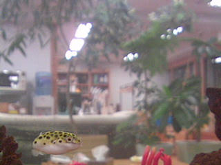 ほぼ日の事務所にあるミドリフグの水槽を写しています。 ミドリフグさんの姿をみるもよし。その先にみえる会議の風景をみるもよし。暇つぶしにいかがですか。