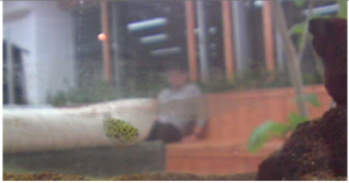 ほぼ日の事務所にあるミドリフグの水槽を写しています。 ミドリフグさんの姿をみるもよし。その先にみえる会議の風景をみるもよし。暇つぶしにいかがですか。