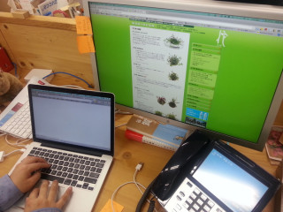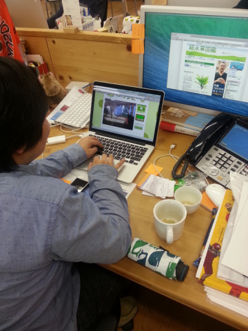 ほぼ日の事務所にあるミドリフグの水槽を写しています。 ミドリフグさんの姿をみるもよし。その先にみえる会議の風景をみるもよし。暇つぶしにいかがですか。