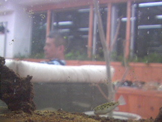 ほぼ日の事務所にあるミドリフグの水槽を写しています。 ミドリフグさんの姿をみるもよし。その先にみえる会議の風景をみるもよし。暇つぶしにいかがですか。