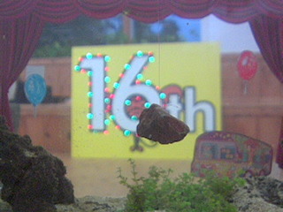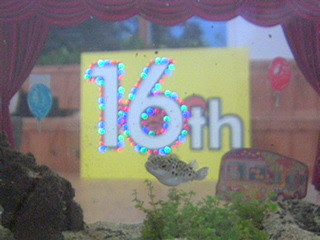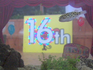 記念日の目撃情報 ーーーーーーーーーー 16周年おめでとうございます。 ニクい演出をありがとうございます。 ミドリフグも大喜び。 昼休み中ひろみーーーーーーーーーー めでたいめでたい、16周年!*\(^o^)/*フグさんも水草で楽しそうで、めでたい! ちゃー ーーーーーーーーーー ほぼ日の皆さま、ほぼにちは。 16周年、おめでとうございます! フグさん、真正面なお顔ですか?? つぶらな瞳と、おちょぼ口が、なんとも!かわいらしぃー! くま太郎ーーーーーーーーーー こんにちは。 16周年おめでとうございます♪フグさんも、ひとことお祝いを述べられているようです! ゆ〜こーーーーーーーーーー ビバ!16周年!!! anーーーーーーーーーー 16周年おめでとうございます! フグさんのなんと誇らしげなお顔。 キリリ! カーテンも素敵 ゆー ーーーーーーーーーー ほぼにちは。 16周年おめでとうございます。 これまでも何度かフグさんにはお会いしてきましたが、こんなに大きくフグさんの全体像を見せてくれたことはありませんでした。 記念すべき日に大サービス。ありがとうフグさん。 背景の電飾もくっきり★ と、うれしかったので送信してみます。 ひつじーーーーーーーーーー これは、石が浮いています。 「浮遊の術?」 て、水中ですけどね。 (この後石はどこに?) ーーーーーーーーーー 先日の16周年、たくさんのフグさん投稿をいただき、ありがとうございます。 すっごく嬉しいです。 もちろん、飾り付けを頑張った かなり、ホクホクしています。 ところで 2014/06/09 19:15 |