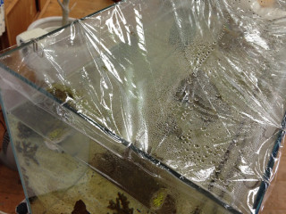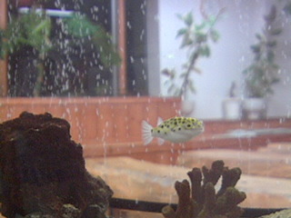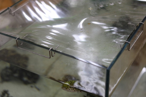 ラミネートなあんちくしょう ------------------------------めっちゃ目がバシーーーーっと合っちゃいました♪なんか、どや顔のイケメンフグさんですねー。 (うに@タブレット) ------------------------------ うにさんどやイケメンなフグさんをありがとうございます。 たいへん残念なことに、メンなのかどうかが、どうもわからないのですが、その場合はイケウィメンということで、ひとつ。 ん?あれ?メンはmenでなくて面かな? イケヅラ? だったら性別は関係ないかな? ともあれ、なんともステキなどやぶりです。 アゴもつき出してる感じがしますね。 さて。どやと言えば。 フグ水槽に事件です。 ある日、ラップがはられていました。 天板部がしわしわ。とってもしわしわ。 (2枚め) ま、いろんなことが起こる事務所ですから、ラップくらい、あるよねと思っていたら、翌日、ぴーんと張られた何かに変わっていました。 なんだろう?ラミネート? 「ふっ。それ、ボク。ふっ」 最近何かと出番の多い鈴木くんのしわざでした。 みごとなどや顔。 元フグチームの んー。 それよか、もともとあったガラスの天板がどこに行っちゃったのかが知りたいんだけどなぁ。 もどしてくれないかなぁ。 2015/05/26 10:39 |