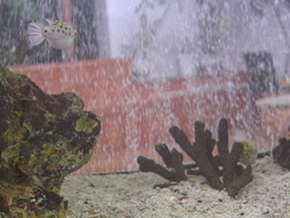 涼を演出? ---------------------------------------------------あれ? なんだか、泡、大盤振る舞いじゃないですか? 上のフグさんは泡を眺めてるし、下のフグさんはアクロバティックなことしてる…。 涼を演出してるのかしらん? (どろぼっけ) --------------------------------------------------- あっついです。 ほんとに、涼のひとつふたつ、演出していただかないと、やってけないほど暑い日が続いております。。。 熱中症にならないように気をつけてください。 外でじっとフグが写るのを待ったりしちゃだめですよ! 明日からは8月ですね。 涼しくなるお話がありましたら、こちらへお寄せください。 読んで涼しくなりたい方は、もうしばらくお待ちください。 ぼくはページの感じからして無理なので、2秒以上開いたことがありません。 今もリンクを貼るために開けて、2秒で閉じました。 りかさん、ごめんなさい。 2015/07/31 09:22 |